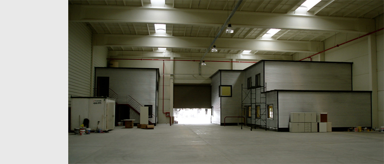 Oficinas dentro de depósito industrial.